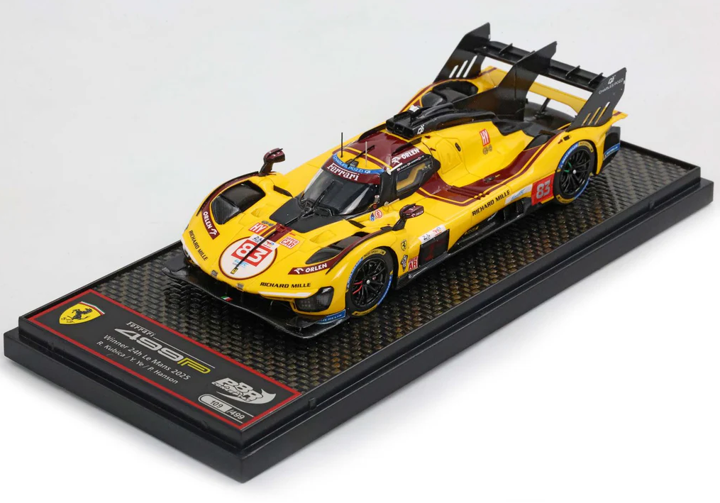 2025 Ferrari 499P Hypercar LeMans Winner Kubica/Hanson/Ye w/display case
